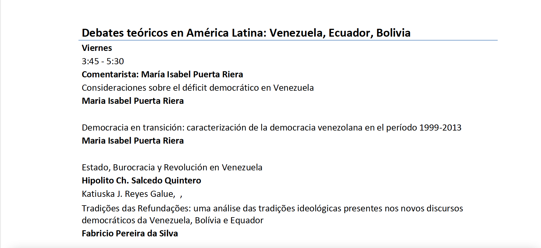 Democratization, Institutional Change and Governance in Venezuela. Chapter of the book: Debates Social Sciences. Universidad de Carabobo (2012).